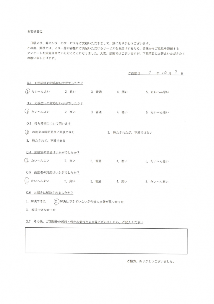 Q.7 その他、ご面談後の感想・何かお気づきの点等がございましたら、ご記入ください。