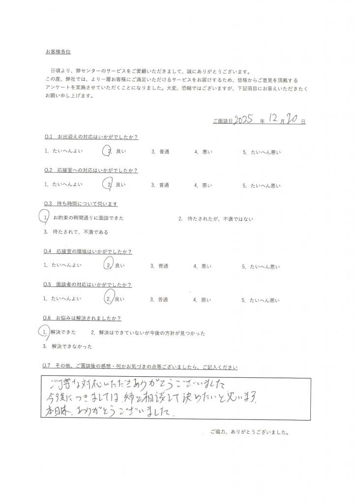 Q.7 その他、ご面談後の感想・何かお気づきの点等がございましたら、ご記入ください。