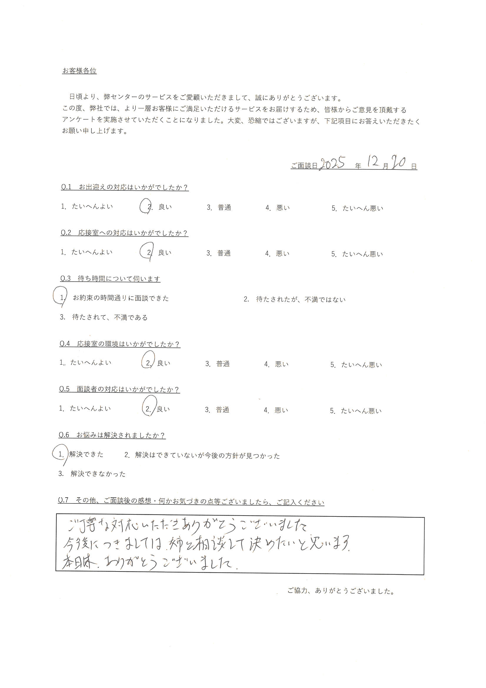 Q.7 その他、ご面談後の感想・何かお気づきの点等がございましたら、ご記入ください。