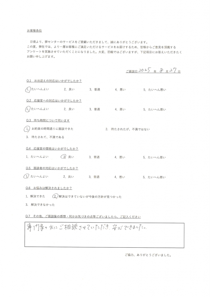 専門家の方にご相談させていただき、安心できました。